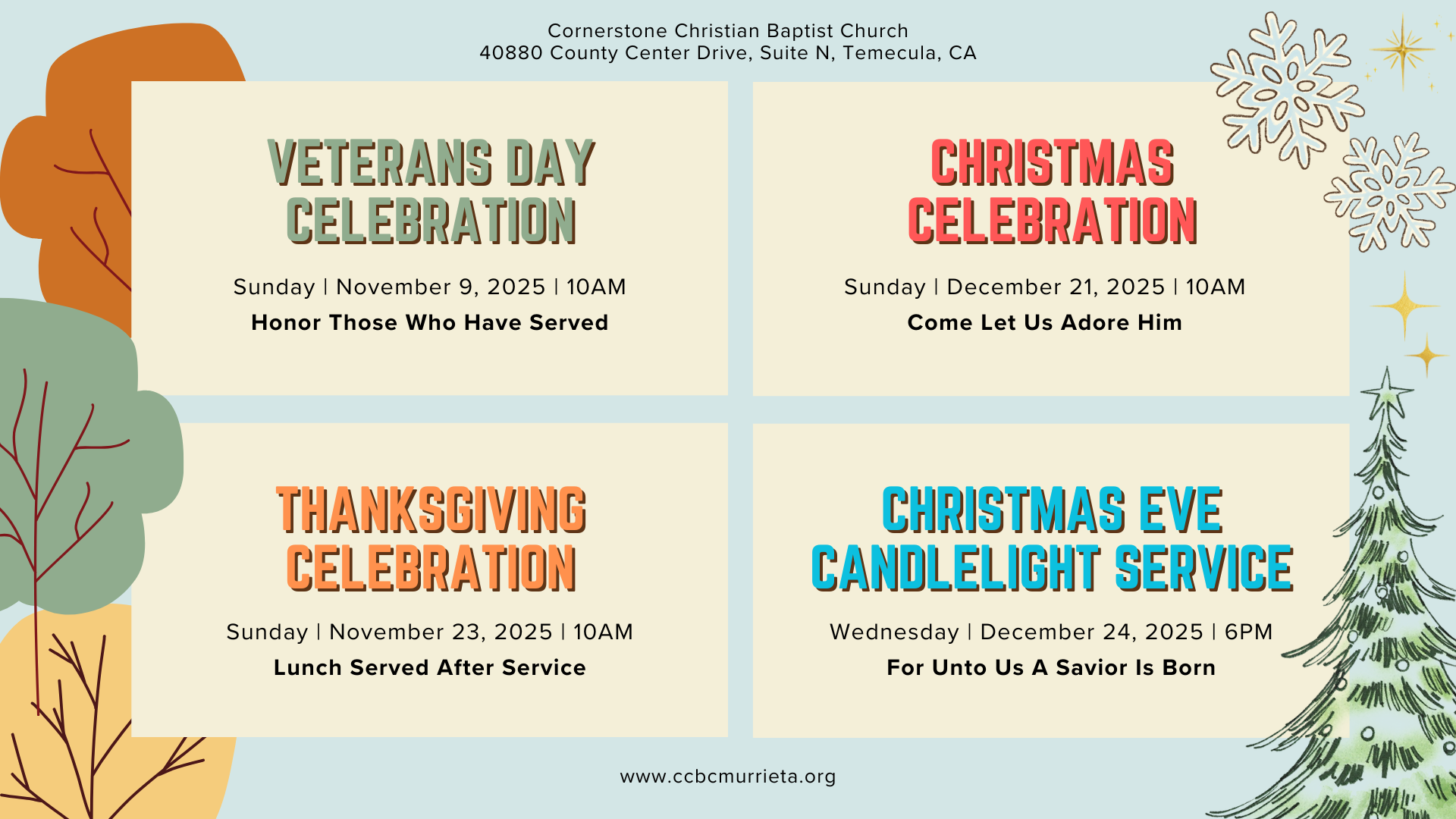 We are very happy that you have taken the time to visit our website! Like many church websites, our desire is to give you an overview of our ministries, programs, and other information you may want to know about Cornerstone Christian Baptist Church.